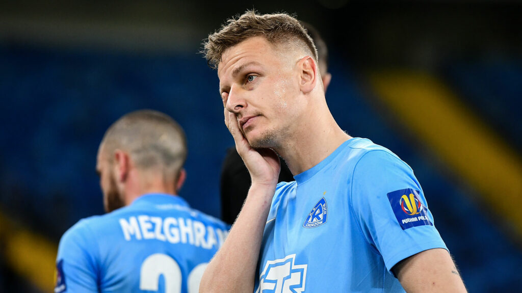 Dawid Szulczek znów postawił na ustawienie z trzema obrońcami, ale tradycyjnie dokonał zmian w składzie. Kazał swoim zawodnikom zagrać wysoko i agresywnie. I tak rozpoczęli mecz z Legią. Co z tego, skoro Yehor Tsykało fatalnie stracił piłkę w środku boiska i szybko zrobiło się 0:1, bo Legia takich prezentów nie marnuje.