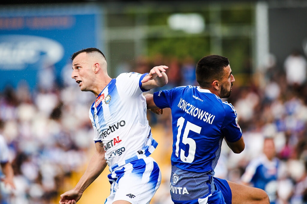 Tomasz Bała w pierwszych 20 minutach miał dwie okazje. Najpierw strzelał niecelnie głową, a potem spróbował przewrotką zaskoczyć bramkarza i trafił w poprzeczkę. Pech nie opuszcza środkowego napastnika chorzowian, który wciąż czeka na pierwszą bramkę w nowych barwach.