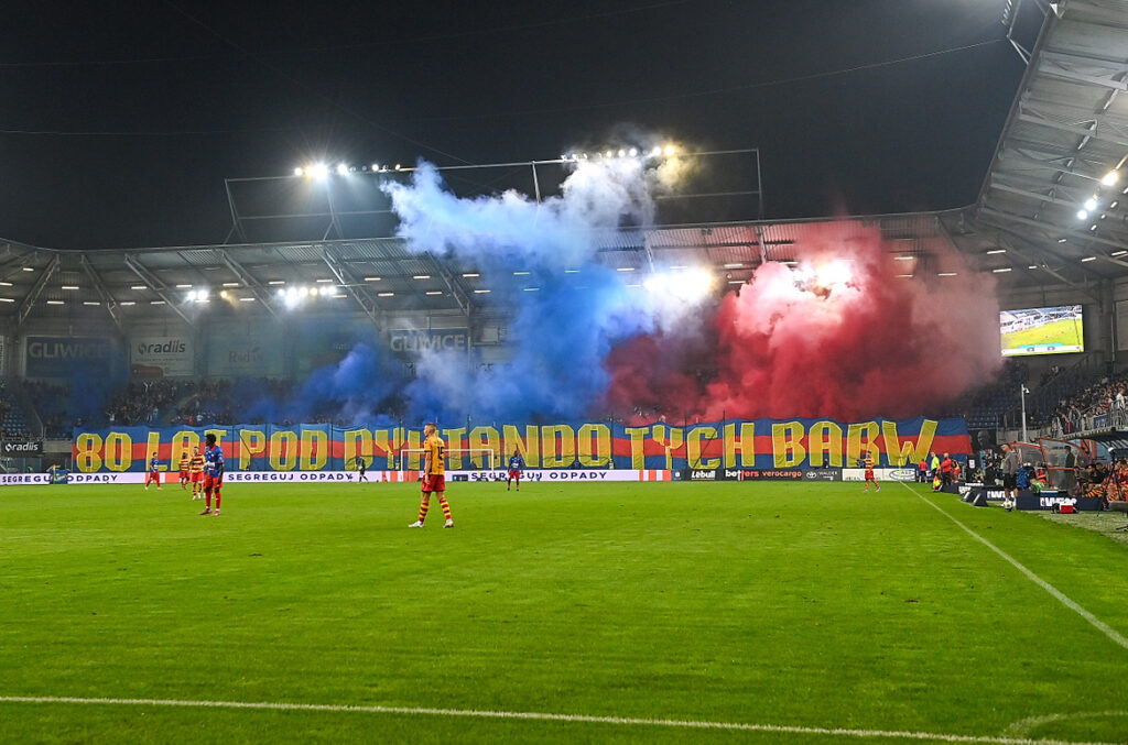 Kulminacja obchodów 80-lecia istnienia Piasta Gliwice przypadła na spotkanie 8. kolejki PKO BP Ekstraklasy z Jagiellonią Białystok. Przy Okrzei panowało istne święto, które udoskonalone zostało bramką na wagę zwycięskiego remisu na dwie minuty przed końcem meczu. Zobaczcie zdjęcia z trybun!