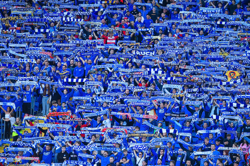 Kibice Ruchu nie zawiedli w niedzielę. Na trybunach pojawiło się 10 785 sympatyków Niebieskich, mimo że jeszcze na godzinę przed początkiem meczu nie było wiadomo, czy dojdzie on do skutku z powodu deszczu.Marcin Bulanda / PressFocusMarcin Bulanda / PressFocusMarcin Bulanda / PressFocusMarcin Bulanda / PressFocus