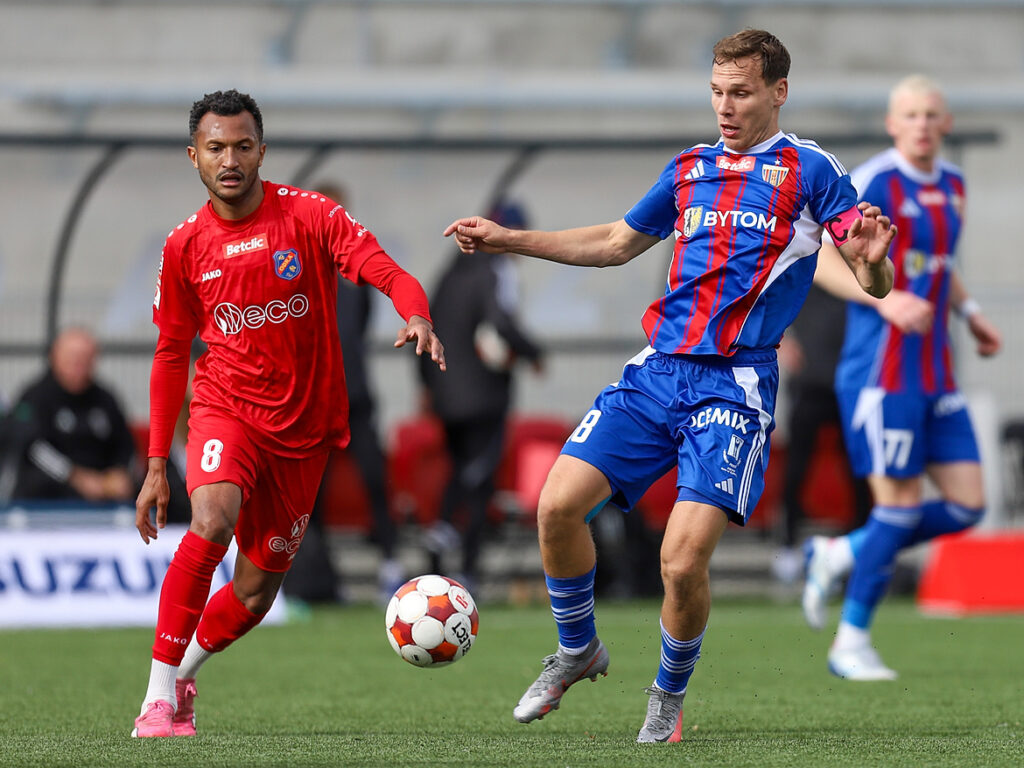 Tomasz Gajda do Bytomia „ściągnięty” został za darmo z MKS-u Kluczbork. Częścią Polonii jest od 2 lipca 2022 roku. Ze śląskim klubem sięgnął już po dwa awanse. Najpierw z III do II ligi, a jeszcze przed kilkoma miesiącami na zaplecze polskiej elity. O ile gra na trzecim szczeblu rozgrywkowym dla kapitana Polonii nie była niczym nowym, bo rozegrał na nim 32 mecze w Sokole Ostróda, o tyle bieżący sezon jest całkowicie nowym doświadczeniem. 29-latek rozegrał już 11 pojedynków w Betclic 1.Lidze i śmiało rzec można, że jak na sternika przystało, jest synonimem solidności.