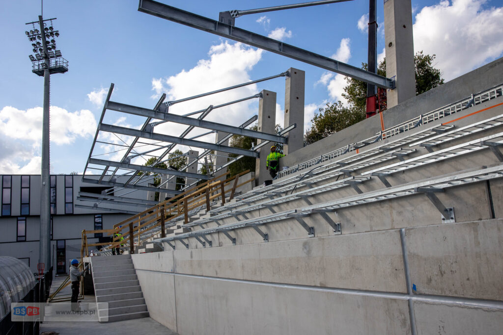 Jak poinformowała Polonia Bytom – w ostatnim okresie przy Piłkarskiej 8 doszło do zakończenia montażu konstrukcji zadaszenia trybuny. Prace przy profilach pod siedziska nie tylko dobiegły końca, ale same krzesełka również zostały zamontowane. Trwają jeszcze prace związane z niwelacją i utwardzaniem terenu wokół boiska w celu stworzenia dróg dojścia do trybun.