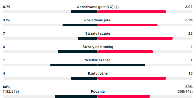Mimo, że dostała obuchem w łeb, to nie złożyła broni. – Ten gol dał nam drugie życie – przyznał Grzegorz Tomasiewicz w przerwie meczu, czyli krótko po strzeleniu gola kontaktowego. W drugich 45 minutach on i koledzy dominowali na boisku. Arka nie potrafiła oddać celnego strzału na bramkę Frantiska Placha. Piast trafił w poprzeczkę za sprawą Erika Jirki. Miał też kilka innych świetnych okazji. O jego przewadze w tym spotkaniu najlepiej świadczą statystyki.